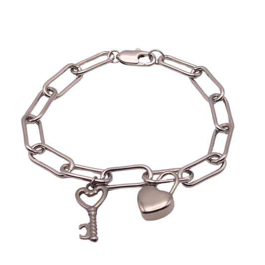 Silver Lock and Key Paperclip Chain Bracelet