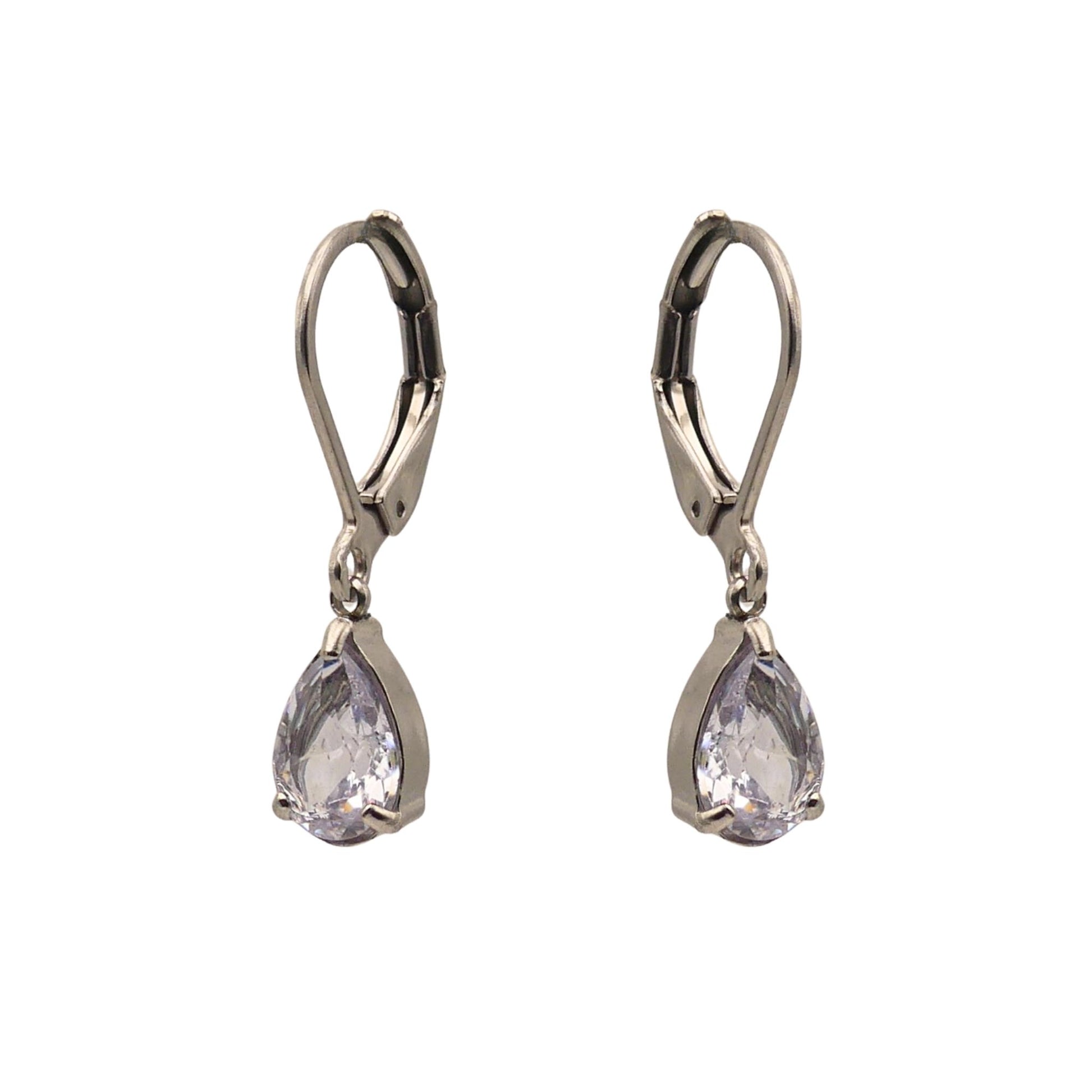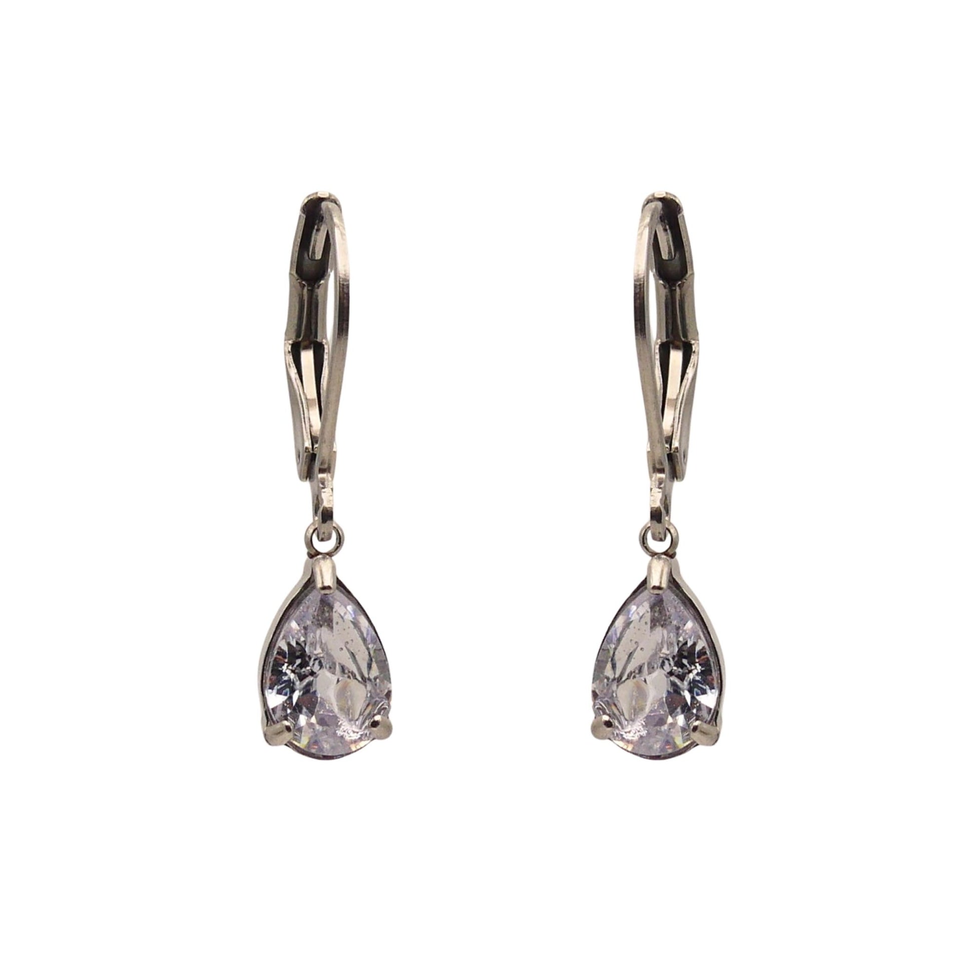 Silver Pear Cut Crystal Dangle Drop Earrings